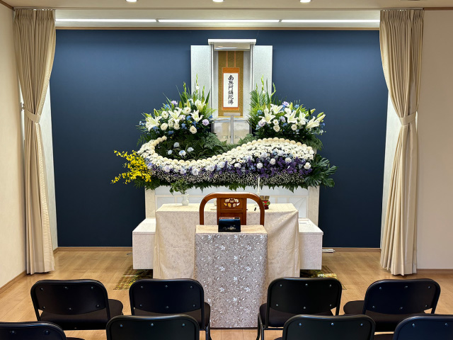 木の温もりと伝統が感じられる白木祭壇です。祭壇を飾る四季それぞれの花がよく映え、心に残る最後のお別れを彩ります。